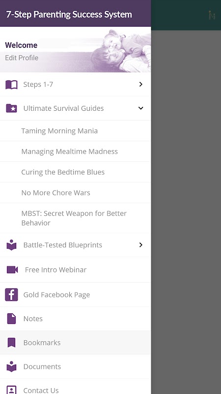 এই অ্যাপ্লিকেশনটি কেবলমাত্র 7-পদক্ষেপের প্যারেন্টিং সাফল্য সিস্টেমে তালিকাভুক্তদের জন্য।