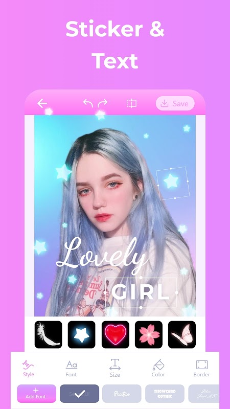 - Easily add beautiful text or stickers