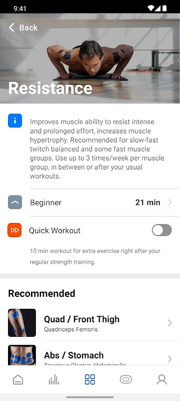 PowerDot-এর জন্য সঙ্গী অ্যাপ - সংযুক্ত পরিধানযোগ্য স্পোর্টস পেশী উদ্দীপক