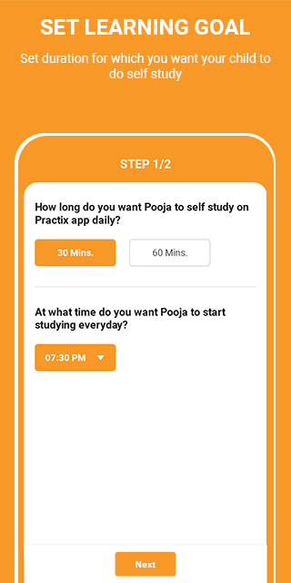 প্র্যাকটিক্সের সাহায্যে আপনি এমন সময়কাল নির্ধারণ করতে পারেন যার জন্য আপনি চান যে আপনার শিশুটি প্রতিদিন পড়াশোনা করতে পারে এবং আমরা বাকী যত্ন নেব।