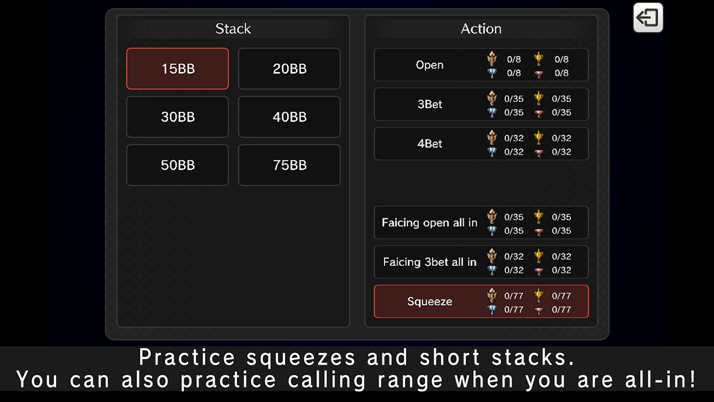 আপনি শুধুমাত্র "ওপেন", "3BET", এবং "4BET" প্রিফ্লপ নয়, "Squeeze"ও অনুশীলন করতে পারেন।