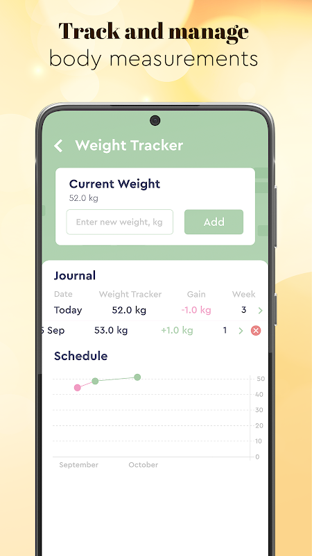 আপনি বিনা দ্বিধায় আপনার গর্ভাবস্থার অগ্রগতি ট্র্যাক করতে যাচ্ছেন। আমাদের অ্যাপ আপনাকে আপনার বর্তমান, অতীত এবং পরবর্তী গর্ভাবস্থার সপ্তাহগুলি দেখতে দেবে। তা ছাড়াও, আপনার গর্ভাবস্থার দিন, আপনার সন্তান এবং নিজের সম্পর্কে বিস্তারিত তথ্যের অ্যাক্সেস থাকবে।