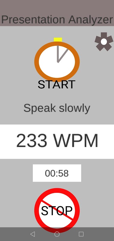 উপস্থাপনা বিশ্লেষক হল একটি উপস্থাপনা অনুশীলন সহায়তা সরঞ্জাম যা পরিমাপ করে যে আপনি ইংরেজিতে মৌখিক উপস্থাপনায় প্রতি মিনিটে কত শব্দ (wpm) বলছেন।