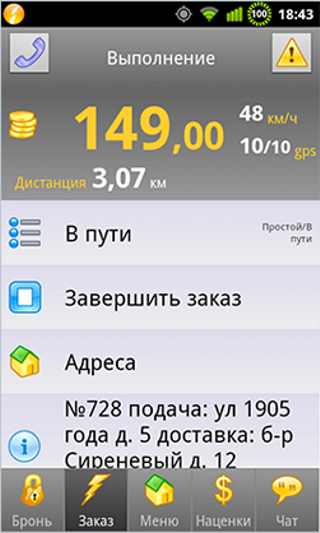 এই অ্যাপ্লিকেশানটির সাথে চালক প্রতিপত্তি সিস্টেম প্রাপ্তিসাধ্য আদেশ সম্পর্কে তথ্য পায়, অর্ডার গ্রহণ, (, ঠিকানায় আগমনের চালানো পার্কিং বিরতি, ইত্যাদি) আদেশ অবস্থা পরিচালনা করুন। এটি ক্রয় করার পরিকল্পনা কলিং, গ্রাহক এবং প্রেরণ সেবা সাথে যোগাযোগ সম্ভব। আবেদন সামর্থ্য অস্বাভাবিক পরিস্থিতিতে একটি অ্যালার্ম বার্তা সূচনা করতে হবে।