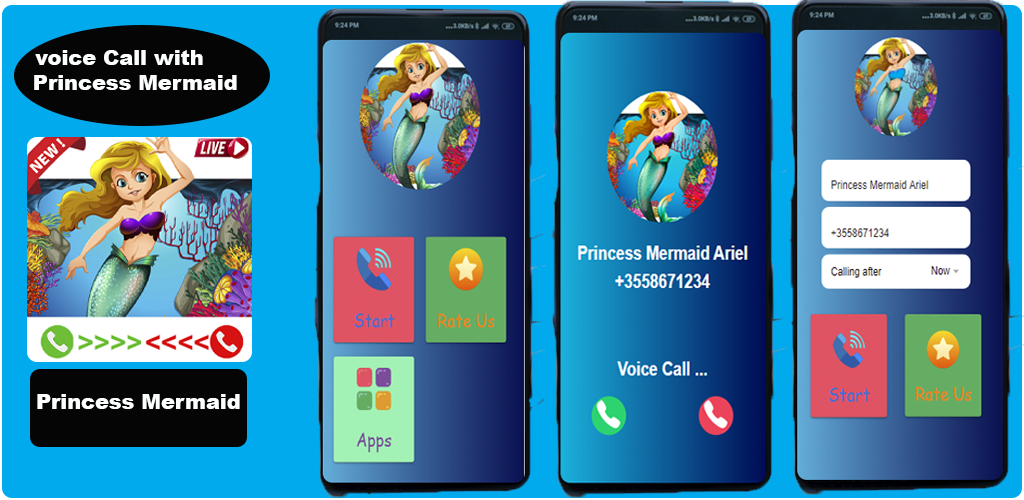 প্রিন্সেস মারমেইড আপনাকে কল করে - ফেক কল you আপনাকে একটি কাস্টম ভয়েস সহ প্রিন্সেস মের্ময়েড থেকে জাল কল, প্রিন্সেস মারমেইডের কল পেতে অনুমতি দেবে।