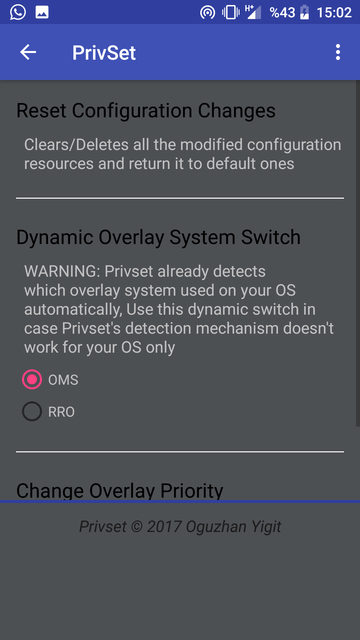 - Privset is an android app which allows users to change non-changeable device-specific system settings through overlaying android framework with help of android's RRO and OMS systems (please look at the above for detailed info)