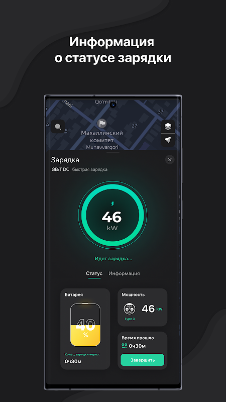 Интегрирована карта, чтобы легко находить ближайшую станцию для зарядки.