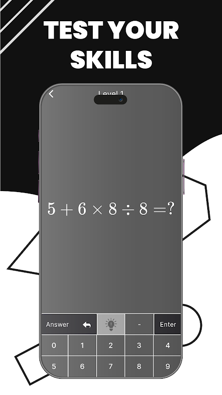 ব্যবহারকারী-বান্ধব ইনপুট: স্বজ্ঞাত অন্তর্নির্মিত মিনি কীবোর্ড ব্যবহার করে ধাঁধা সমাধান করুন, এটি সমস্ত গণিত ধাঁধার জন্য উত্তর ইনপুট করা সহজ করে তোলে।