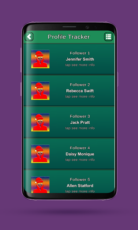 এই সরঞ্জামের সাহায্যে আপনি ফেসবুক এবং / অথবা ইনস্টাগ্রামে আপনার প্রোফাইল অনুসরণকারী লোকদের একটি ট্র্যাক রাখতে সক্ষম হবেন। তালিকার যে কোনও অনুগামীকে তাদের প্রোফাইল দেখতে আলতো চাপুন।
