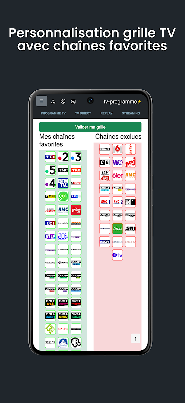2 সপ্তাহের মধ্যে 100টি চ্যানেল (TNT, Box, Cable-Sat, ইত্যাদি) সহ সবচেয়ে সম্পূর্ণ টিভি প্রোগ্রাম। এছাড়াও আপনার প্রিয় টিভি প্রোগ্রামগুলি (টিভিতে সম্প্রচারিত অনুষ্ঠান, সিরিজ, ফিল্ম ইত্যাদি) দেখার জন্য রিপ্লেগুলি খুঁজুন৷