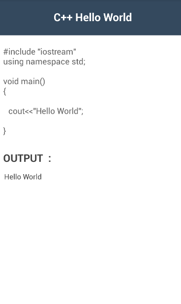 এই অ্যাপ্লিকেশন দিয়ে প্রোগ্রামগুলি চালানো বা চালানো সম্ভব নয়। প্রোগ্রামগুলির আউটপুট ইতিমধ্যে যাচাই করা হয়েছে এবং ব্যবহারকারীর সুবিধার জন্য প্রদর্শিত হয়েছে।