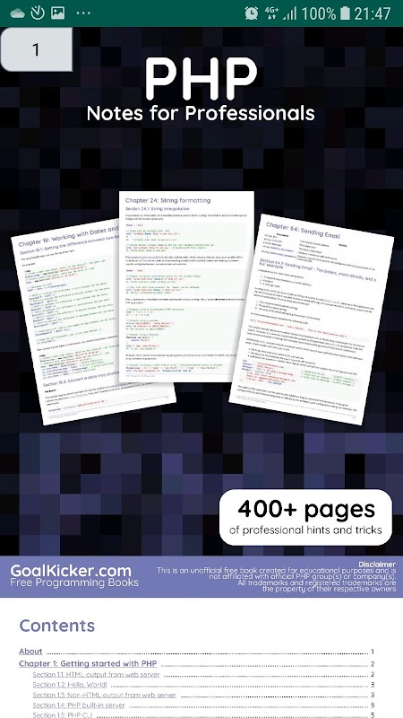 Programming notes for professionals books. This app contains lot of programming languages and other types of languages in PDF file version. Android, Angular 2, Angular JS, Ruby, Ruby on rails, Python, .NET Framework, Spring Framework, C, C#, C++, Bash, PowerShell, SQL, MySQL, MongoDB, Java, JavaScript, Swift, TypeScript, iOS, etc .Lot of guys from Stack Overflow helped for writing this contents.