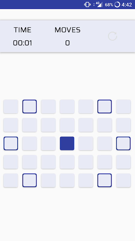 The objective? To colour all the 35 boxes on the screen, starting from the central one and moving three spaces horizontally, three vertically or two diagonally.