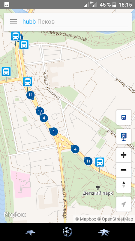 -приложение показывает в режиме реального времени транспорт оборудованный и с функционирующим GPS трекингом в городеПсков.