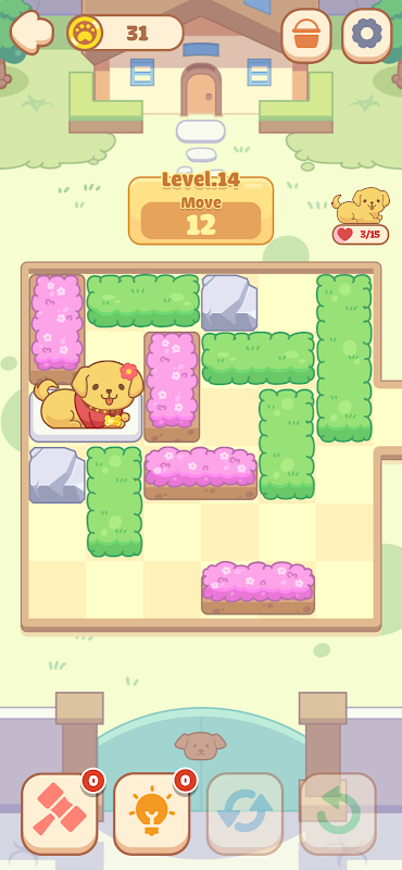 - কুকুরছানাগুলিকে জ্যাম থেকে বের করতে ব্লকগুলি সরান! ↗️
