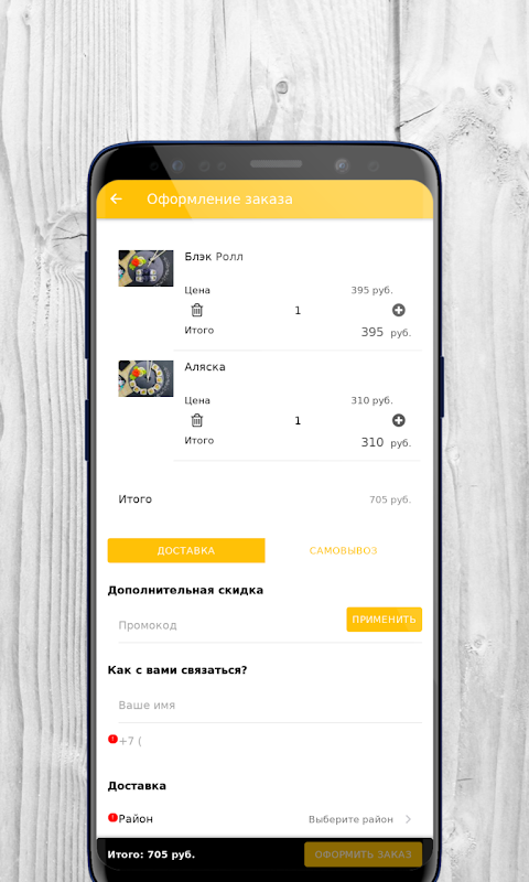 Заказать доставку еды на дом или в офис, а также оформить самовывоз просто и удобно через наше приложение!