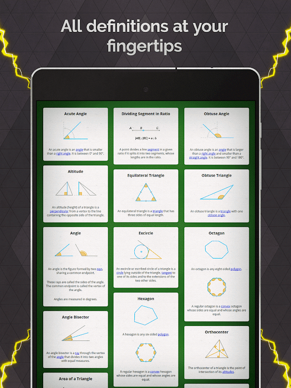 আপনি যদি জ্যামিতির সাথে সবেমাত্র পরিচিতি শুরু করেন তবে গেমটি আপনাকে ইউক্লিডিয়ান জ্যামিতির গুরুত্বপূর্ণ ধারণা এবং বৈশিষ্ট্যগুলি বুঝতে সহায়তা করবে।