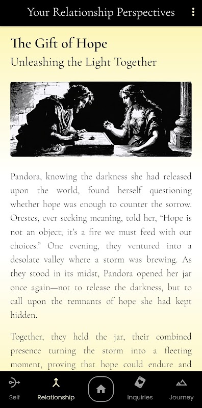 Pythia হল জঙ্গিয়ান মনোবিজ্ঞানের উপর ভিত্তি করে একটি আখ্যান-অ্যাপ যা সক্রিয় কল্পনার মাধ্যমে আপনার নিজের জীবন সংগ্রামের ব্যাখ্যা করতে সাহায্য করার জন্য ব্যক্তিগতকৃত গল্পের উপর নির্ভর করে।
