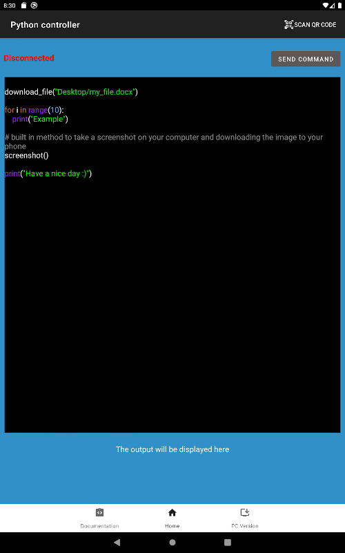 পাইথন কন্ট্রোলার হল প্রথম অ্যাপ্লিকেশন যা আপনাকে আপনার স্মার্টফোন, ট্যাবলেট বা অন্য কম্পিউটার থেকে আপনার হোম কম্পিউটারে পাইথন কমান্ড পাঠাতে দেয়।