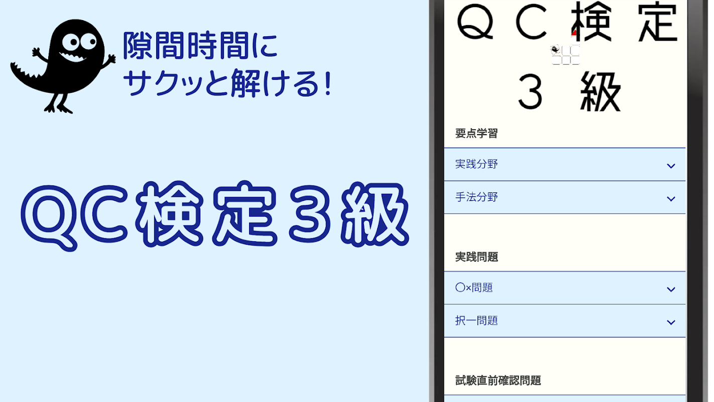 QC(品質管理)検定3級問題を隙間時間に解き、学習できるアプリケーションです。