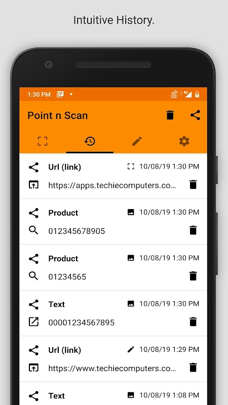✔ ইতিহাস থেকে এক ক্লিকে স্ক্যান করা কোডগুলি পুনরায় তৈরি করুন।