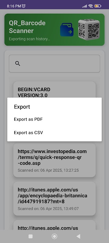 QR এবং বারকোড স্ক্যান করুন, ইতিহাস সংরক্ষণ করুন এবং PDF বা CSV-এ সহজেই রপ্তানি করুন।