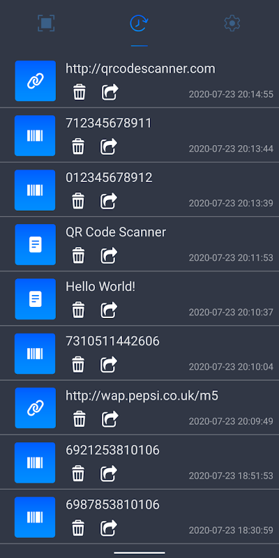 QRcode ইতিহাস সংরক্ষণ করুন history