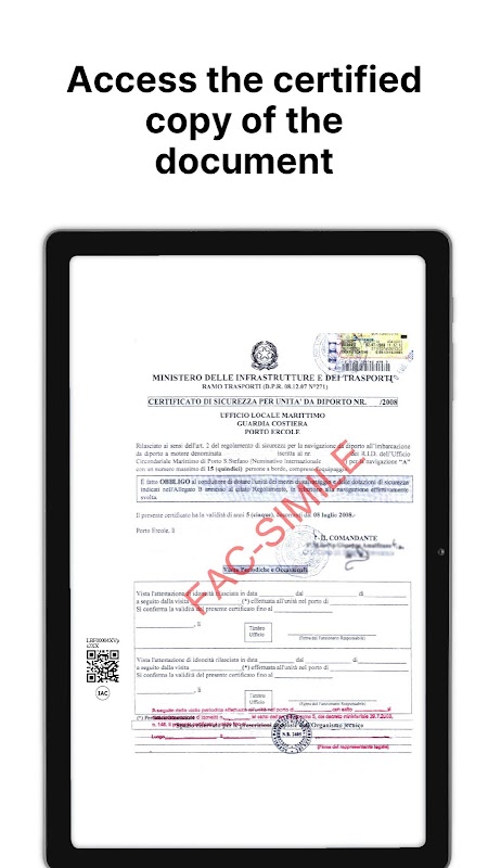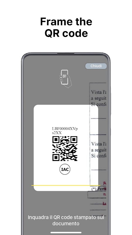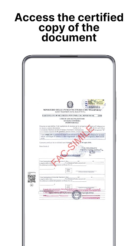 যদি নথিতে QR-CertCode এবং IAC লোগো সহ একটি QR কোড থাকে, তাহলে এর মানে হল যে CAD (ডিজিটাল অ্যাডমিনিস্ট্রেশন কোড) প্রবিধান অনুযায়ী, মূল নথির একটি আইনিভাবে প্রত্যয়িত ডিজিটাল কপি বিদ্যমান।