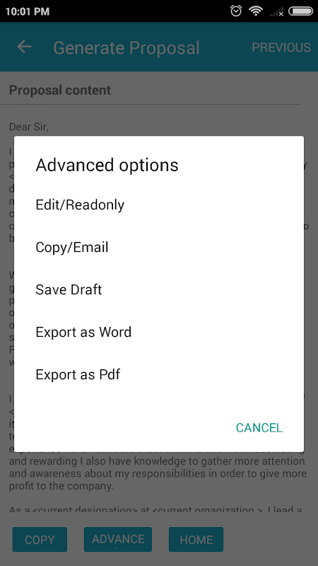 শব্দ এবং PDF হিসেবে মোবাইলে প্রস্তাব এবং ভাগ তৈরি করার জন্য একটি উত্পাদনশীলতা অ্যাপ্লিকেশান