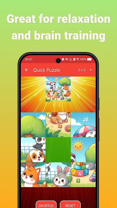 Quick Puzzle is a relaxing and fun sliding puzzle game where you move tiles to form a complete picture. With adorable graphics, bright colors, and simple gameplay, it’s perfect for all ages. The game not only brings joy but also sharpens your mind, improves observation, and trains problem-solving skills.