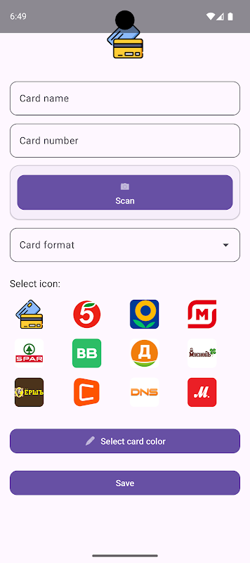 - বারকোড স্ক্যানিং: শুধু কার্ডের বারকোডে ক্যামেরাটি নির্দেশ করুন এবং অ্যাপ্লিকেশনটি স্বয়ংক্রিয়ভাবে সমস্ত ডেটা সনাক্ত করবে এবং সংরক্ষণ করবে।
