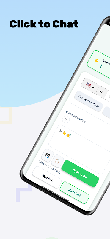 নম্বর সংরক্ষণ না করে WA-তে চ্যাট করুন। কাস্টম সংক্ষিপ্ত লিঙ্ক তৈরি করুন এবং শেয়ার করুন।
