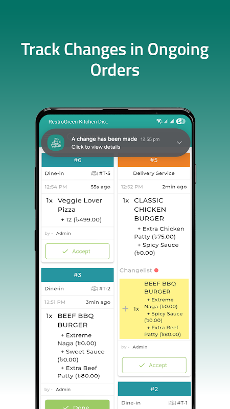 কিচেনের কাজের ধারাকে সুসংগঠিত ও কার্যকর রাখতে প্রতিটি অর্ডার ট্র্যাক করুন এবং সম্পন্ন হিসেবে চিহ্নিত করুন।