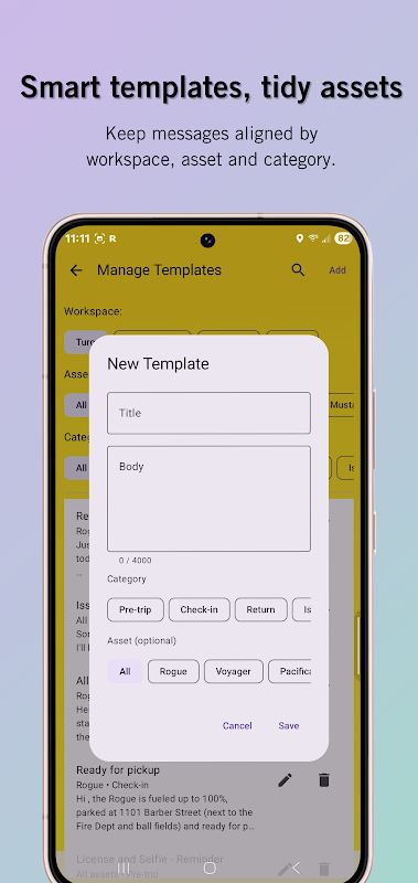 • ওয়ার্কস্পেস: সম্পত্তি, প্ল্যাটফর্ম বা প্রকল্প (যেমন, Airbnb, Turo, Vrbo, Marketplace, eBay) দ্বারা গোষ্ঠী বার্তা।