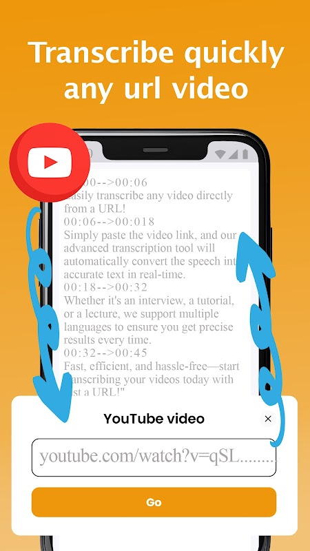 লিঙ্কের মাধ্যমে ভিডিও, অডিও বা ইউটিউব সামগ্রী প্রতিলিপি করুন।