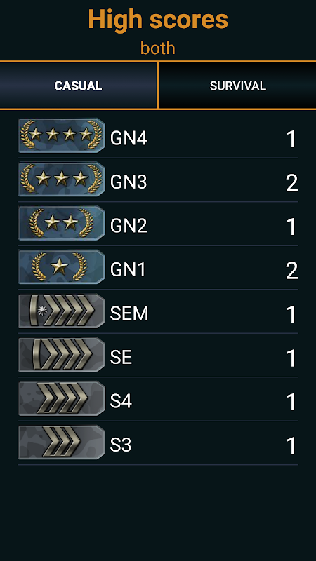 - Casual mode has 20 questions and after you finish answering everything you will get to see in what rank you've been placed.
