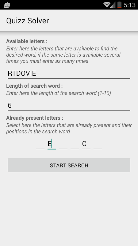 Allows you to find the solution to quiz games where you have to find words