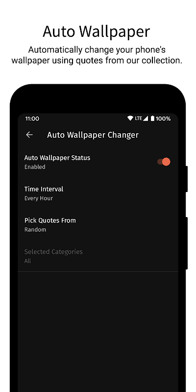 You can use the app to automatically change your phone’s wallpaper at your preferred time intervals. Pick from any quote wallpaper at random or choose a particular category to set auto wallpapers from.