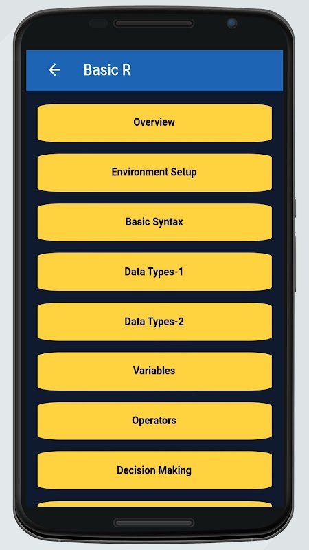 R Tutorial is a complete application for those who want to learn R easily and for free. This application provides tutorial for beginners as well as a working professional. R Tutorial application provides good understanding to Data science. This step-by-step guide is letting you know each and every aspect of R.