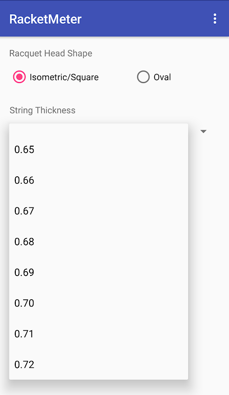 Easily measure badminton racquet string tension. Just tap the strings firmly on your palm 2-3 times. Racket Meter works well on all types of badminton rackets (Oval and Isometric). It is accurate for measuring racket string tension between 18-35 pounds. A must have tool for all badminton players. The app listens to the sound made by your racket's strings when you tap on them with your hand.