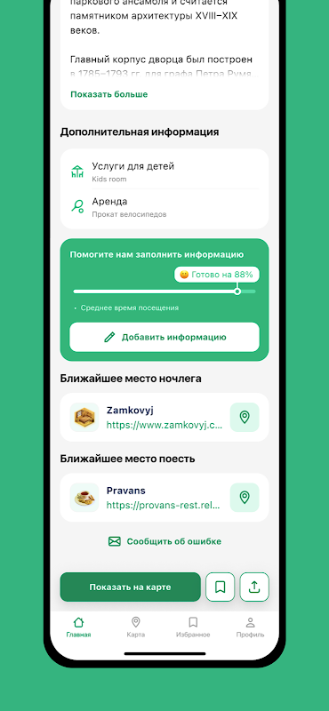 - বস্তুর তথ্য এবং এর ইতিহাসের সাথে পরিচিত হন, সেইসাথে নির্বাচিত বস্তুর কাছাকাছি কোন আকর্ষণগুলি অবস্থিত তা দেখুন