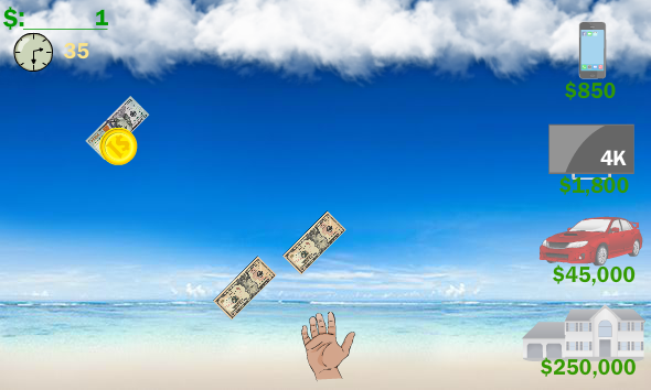 সময় ফুরিয়ে যাওয়ার আগে যতটা সম্ভব টাকা হাতিয়ে নিন। আপনি 30 সেকেন্ড দিয়ে শুরু করবেন, হলুদ কয়েনটি ধরবেন এবং টাইমারে 3 সেকেন্ড যোগ করা হবে। কিন্তু যদি আপনি পতনশীল কোনো টাকা হাতিয়ে নিতে মিস করেন, তাহলে টাইমার থেকে 1 সেকেন্ড কেটে নেওয়া হবে।