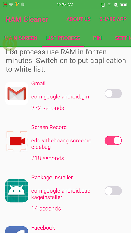 আপনি সাদা তালিকায় আপনার প্রিয় অ্যাপ্লিকেশনটিও পরিষ্কার করতে পারেন রামকে রোধ করতে।