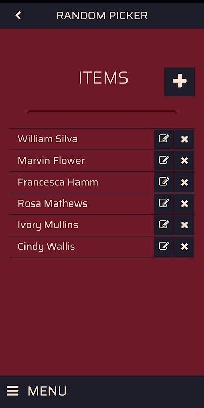 এলোমেলো পিকার একটি সহজ এবং দ্রুত অ্যাপ্লিকেশন আইটেম একটি তালিকা থেকে একটি র্যান্ডম বিজয়ী বাছাই করার জন্য তোলে। এই অ্যাপ্লিকেশনটি varius পরিস্থিতিতে, উদাহরণস্বরূপ অনেকটা ব্যবহার করা যেতে পারে: