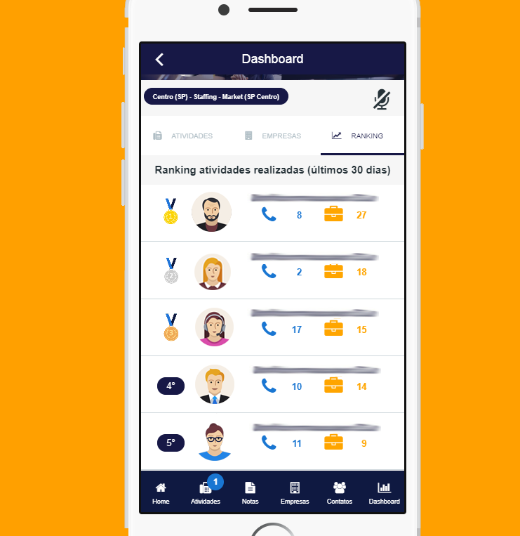 - Dashboard do ranking da equipe de acordo com a célula no qual ele está alocado.