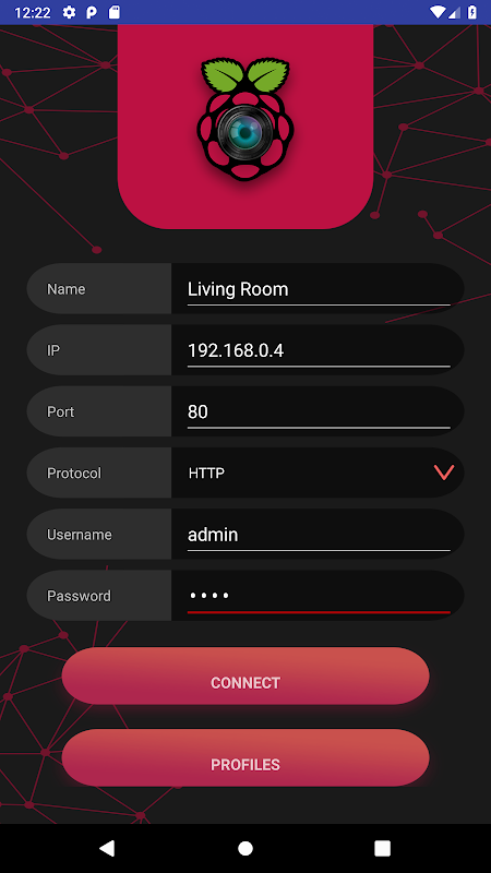 এই অ্যাপ্লিকেশনের দ্বারা আপনাকে আপনার রাস্পবেরী Pi ব্যবহার মোশন প্রকল্প ক্যামেরা সাথে সংযোগ করা হবে