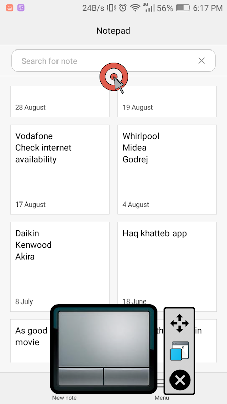 Reachability cursor or Cursor for big phone or Touchpad for android or Mouse touchpad or Mouse cursor