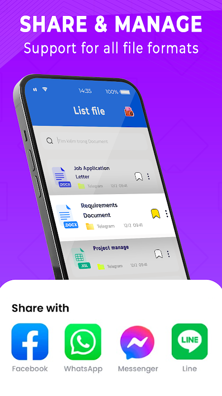ডকুমেন্ট ম্যানেজমেন্ট: আপনার ডিভাইসে অনেক ফাইল আছে। সেগুলি সুসংগঠিত না হলে, সেগুলি খুঁজে পাওয়া আপনার পক্ষে কঠিন হবে বা এটি সাজানোর জন্য আপনার প্রচুর সময় ব্যয় করবে। ফাইল ম্যানেজার ফাংশন আপনাকে সমস্ত ফাইল সংগ্রহ করতে এবং সঠিক বিভাগে বিভক্ত করতে সাহায্য করবে। উপরন্তু, এটি আপনাকে PDF থেকে এক্সেল, DOCS, সময়, আকার, নাম এবং ফরম্যাট অনুসারে বিষয়বস্তু বাছাই করতে দেয়।