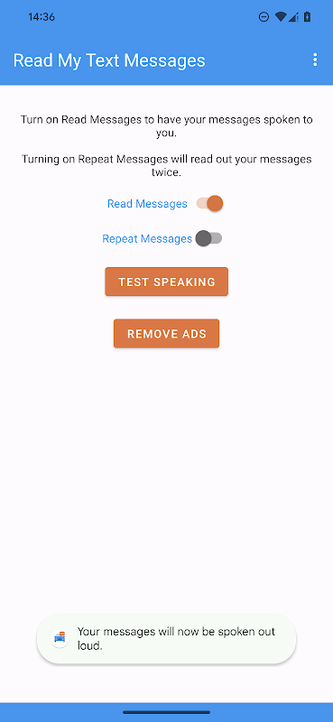 পড়ুন আমার টেক্সট বার্তা যখন ড্রাইভিং সহায়ক, যা জোরে জোরে পড়া আপনার বিজ্ঞপ্তি সব সার্চ. কেবলমাত্র app টি চালু এবং আসার সব বার্তা খুঁজে পড়তে হবে.