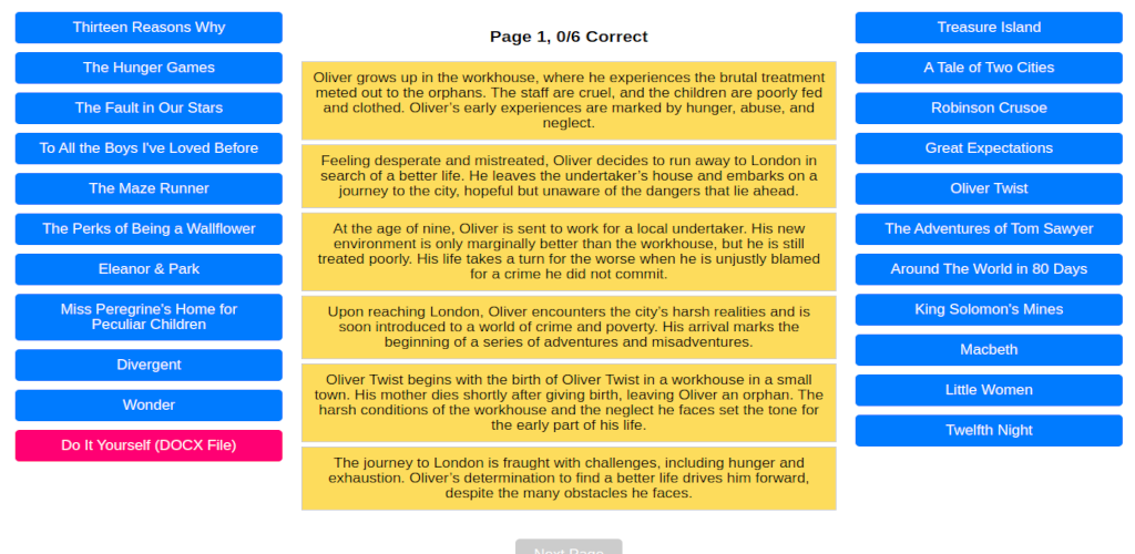 • একবার অনুচ্ছেদগুলি সঠিকভাবে সাজানো হলে, "পরবর্তী পৃষ্ঠা" বোতামটি সক্রিয় হয়, যা প্লেয়ারকে এগিয়ে যেতে দেয়।